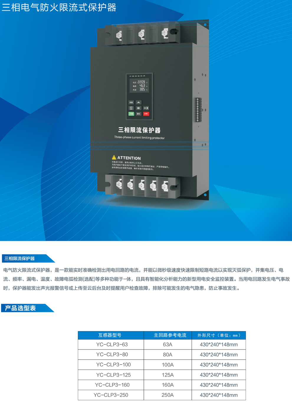 三相電氣防火限流式保護器